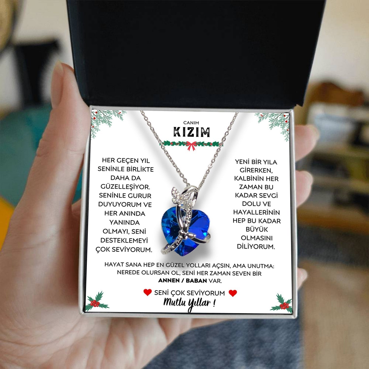 🎄YILBAŞI ÖZEL🎄 Canım Kızıma - Kelebekli Mavi Kalp Kolye