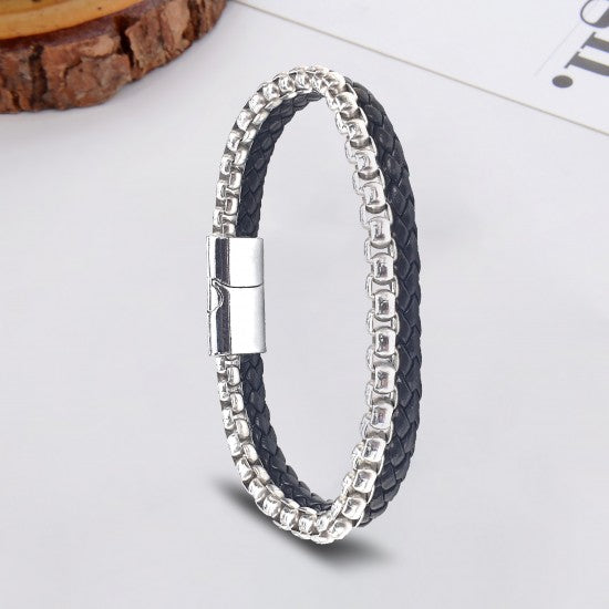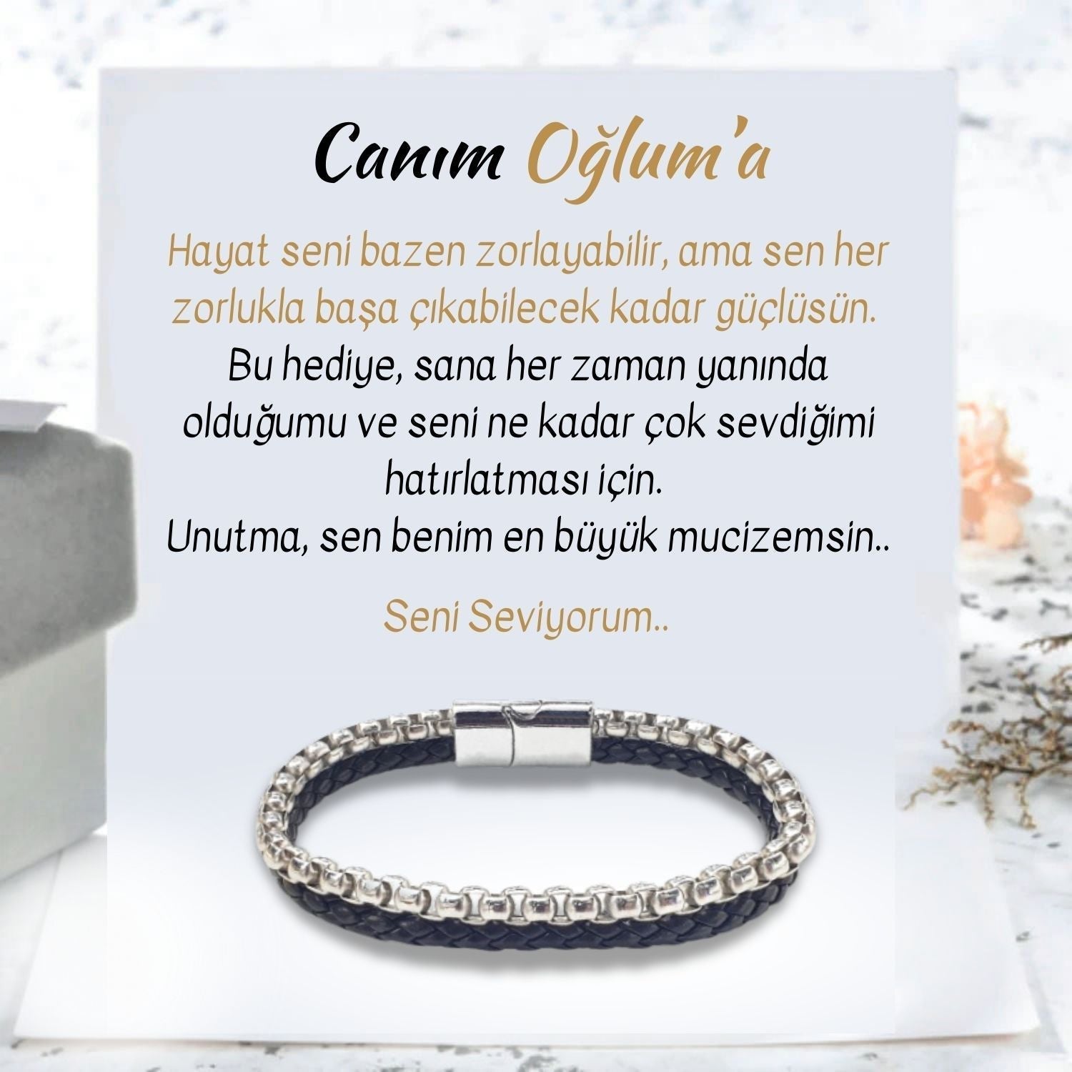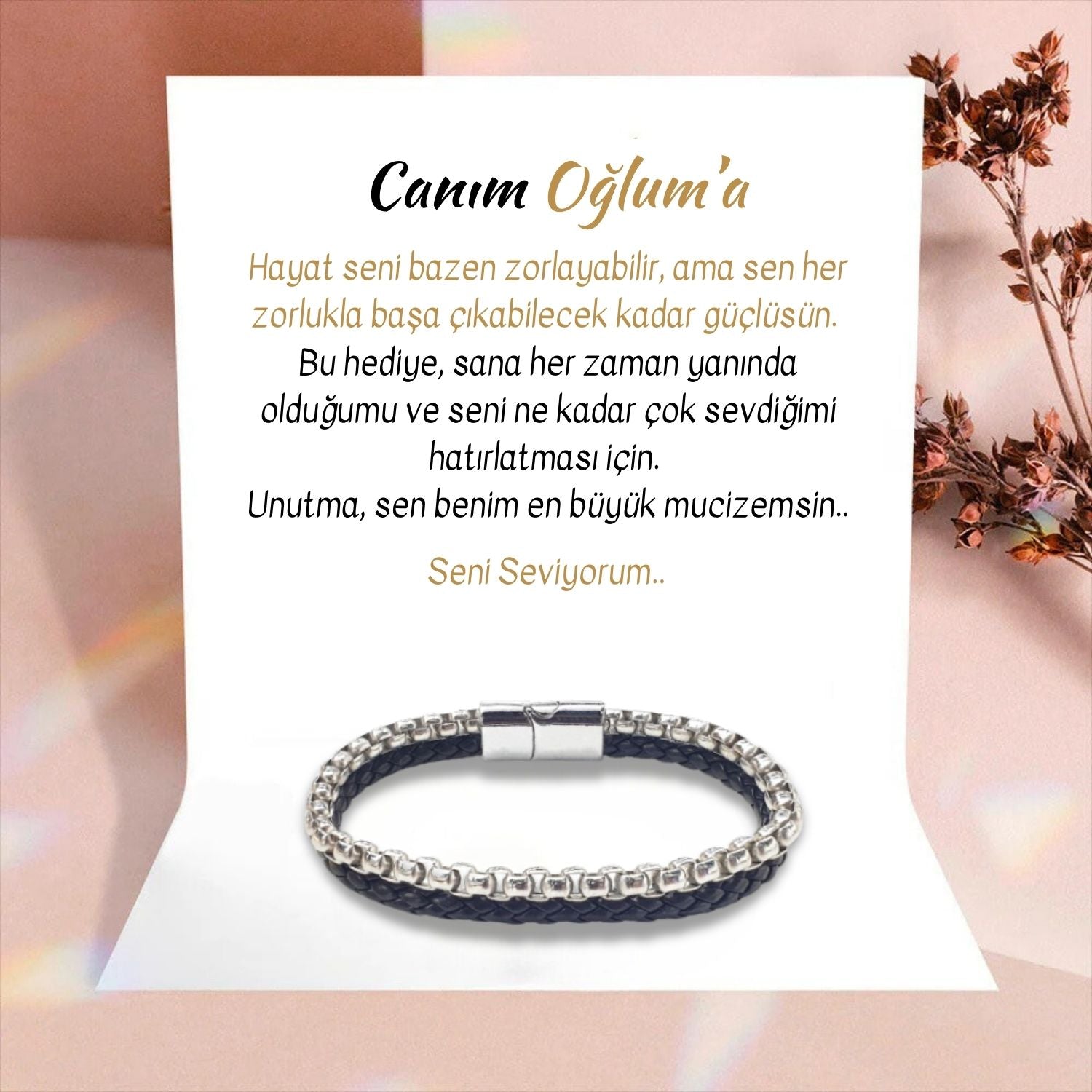 Canım Oğlum'a - İkili Deri Ve Çelik Zincir Bileklik